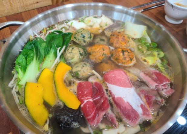일반 만두가 아닌 만두피가 없는 굴림만두로 만든 굴림만두전골이 1인 9000원 이라는 가성비좋은 굴림만두전골한상 입니다.